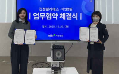 (좌) 진정필라테스 대표, (우) 아인병원 대외협력팀 실장[업뉴스 자료사진]송도 진정필라테스가 보다 전문적이고 안전한 필라테스 지도를 위해 아인병원과 업무협약(MOU)을 체결했다고 밝혔다.이번 협약을 통해 송도 진정필라테스는 산전·산후 관리, 통증 관리 및 체형 교정, 재활이 필요한 회원들을 대상으로 의료적 관점과 운동 전문성이 결합된 체계적인 필라테스 프…