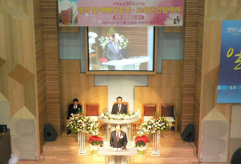 한편, 이날 홍문수 목사(노회장), 윤두태 목사(노회협의회 총무), 이재천 장로(기독신문사장), 박재천 목사 등이 축사와 권면으로 본행사를 축하했으며, 끝으로 교육관 및 주차장 준공 감사패 수여 및 건축 경과보고후 당회장 이성화 목사가 축도하고 마쳤다.     <朴>