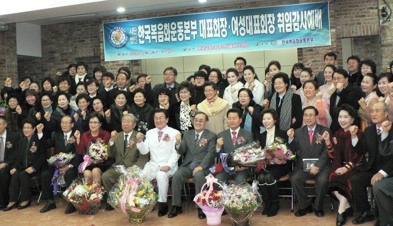 사단법인 한국복음화운동본부(대표총재 피종진 목사, 총재 이종인 목사, 이하 한복운) 대표회장 및 여성대표회장 취임감사예배가 4일 오전 한국교회100주년기념관에서 드려졌다. 대표회장에 정상은 목사, 여성대표회장에 오영자 목사가 취임했다.
