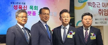취임 감사예배 후에는 ‘성육신 목회 플랫폼 처치’라는 주제로 포럼을 가졌다. GM선교회 창립 5주년을 기념해 열린 이번 포럼에는 이윤석 목사(창조론오픈포럼 공동대표)와 장도선 목사(플랫폼처치 연구위원)가 강사로 나섰다.